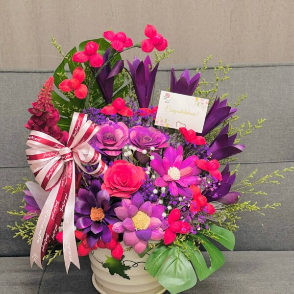 ថូផ្កាសំបកពោតតាំងលើតុបែបខ្យូតៗ